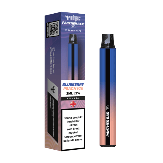 Panther Bar Blueberry Peach Ice pantherbar13 Flavour Berry Format Vape Type E-Cigarette Denna produkt innehåller nikotin som är ett mycket beroendeframkallande ämne.